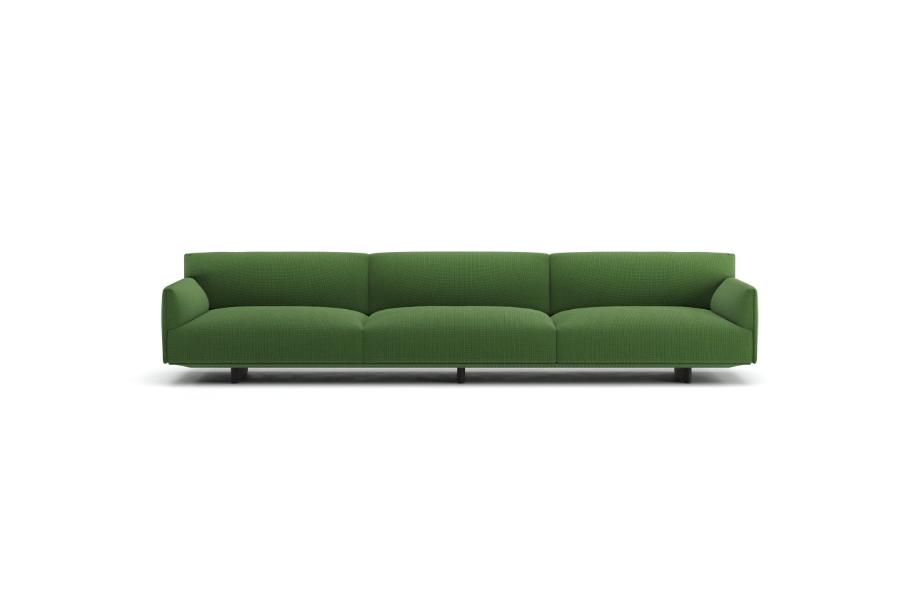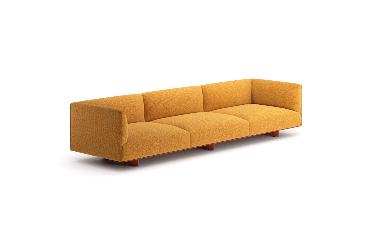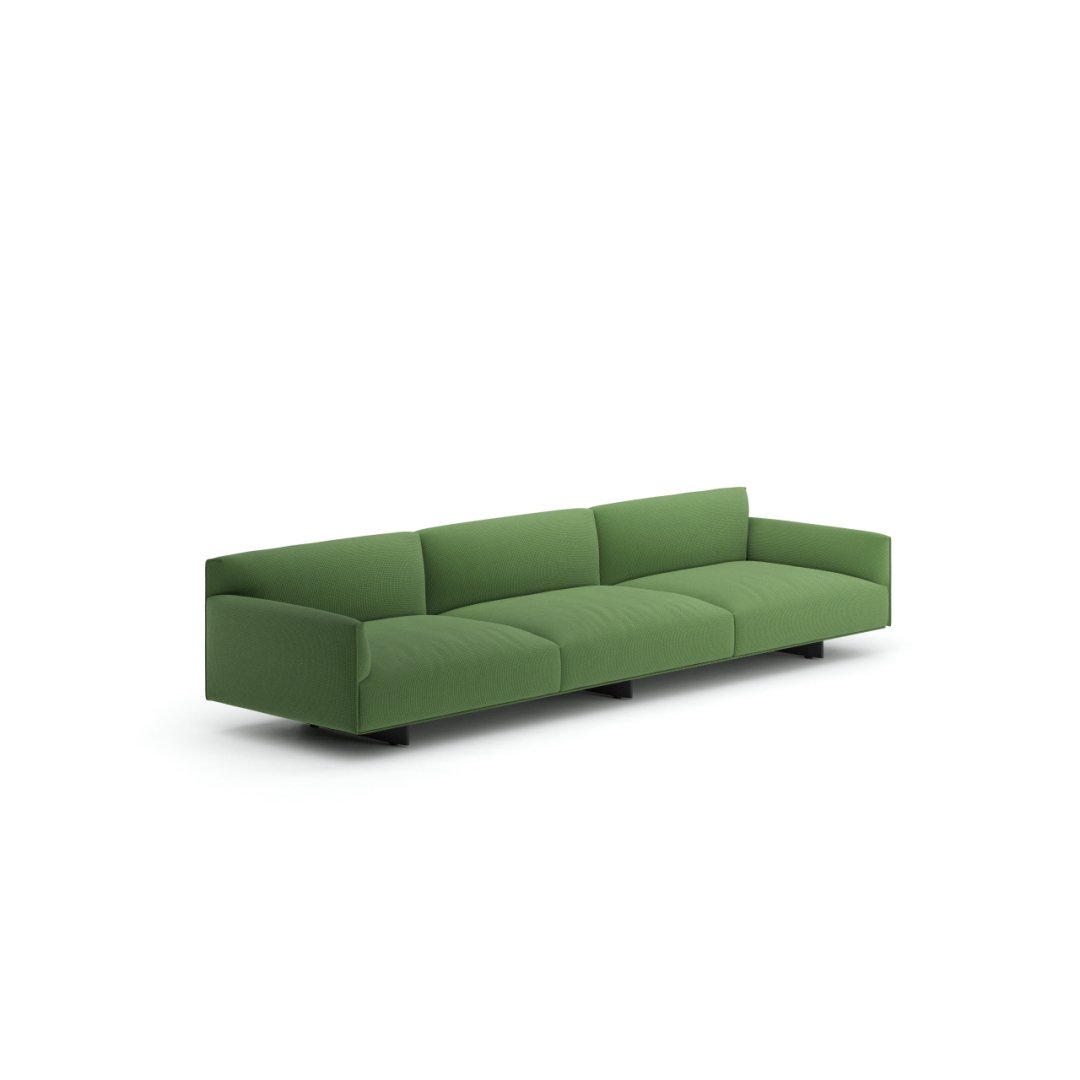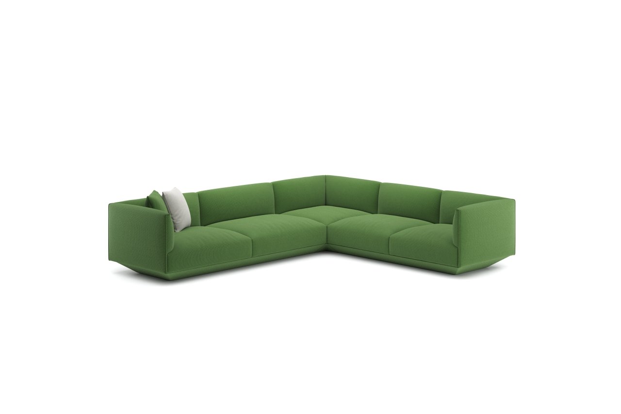 Spacious comfort with a weightless look. Sculpted volumes and a tapered, “levitating” base give it a quiet architectural presence, while deep seats, low arms, and modular side tables let you build the layout you want.