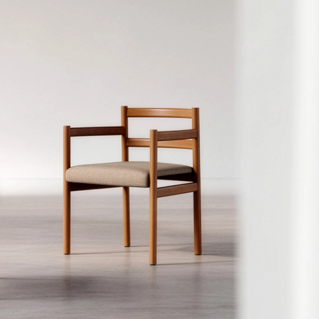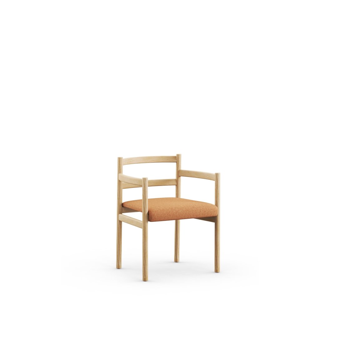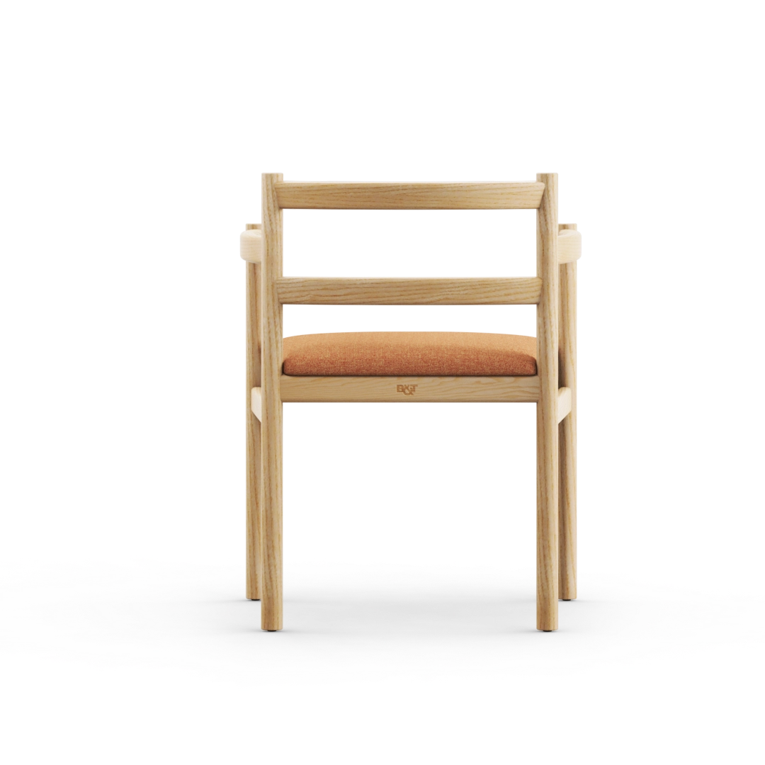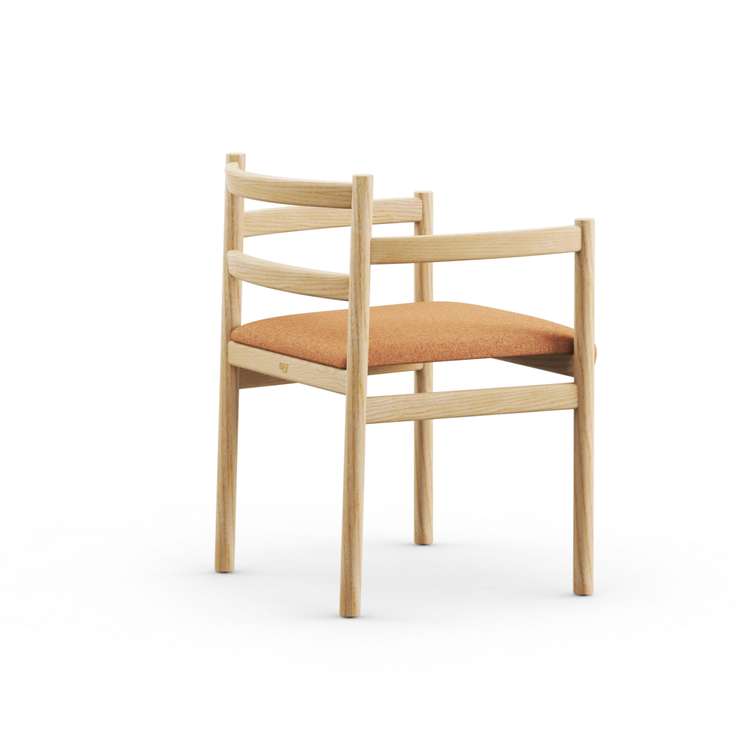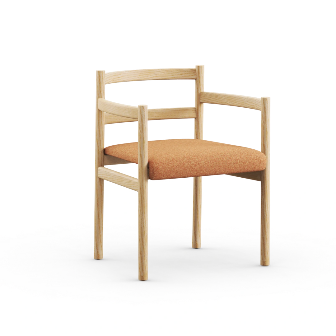 Another Chair with a solid wood ash structure and an upholstered seat offers quiet comfort with a clean, architectural silhouette. The durable hardwood frame keeps the look crisp and grounded, while the upholstered seat adds warmth and support for longer sits. Ideal for dining rooms, meeting spaces, and hospitality interiors, it delivers timeless design with a practical, contract-ready finish.