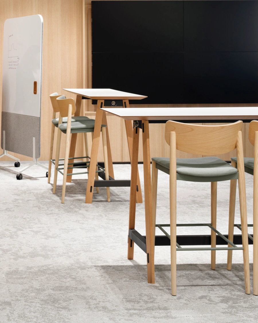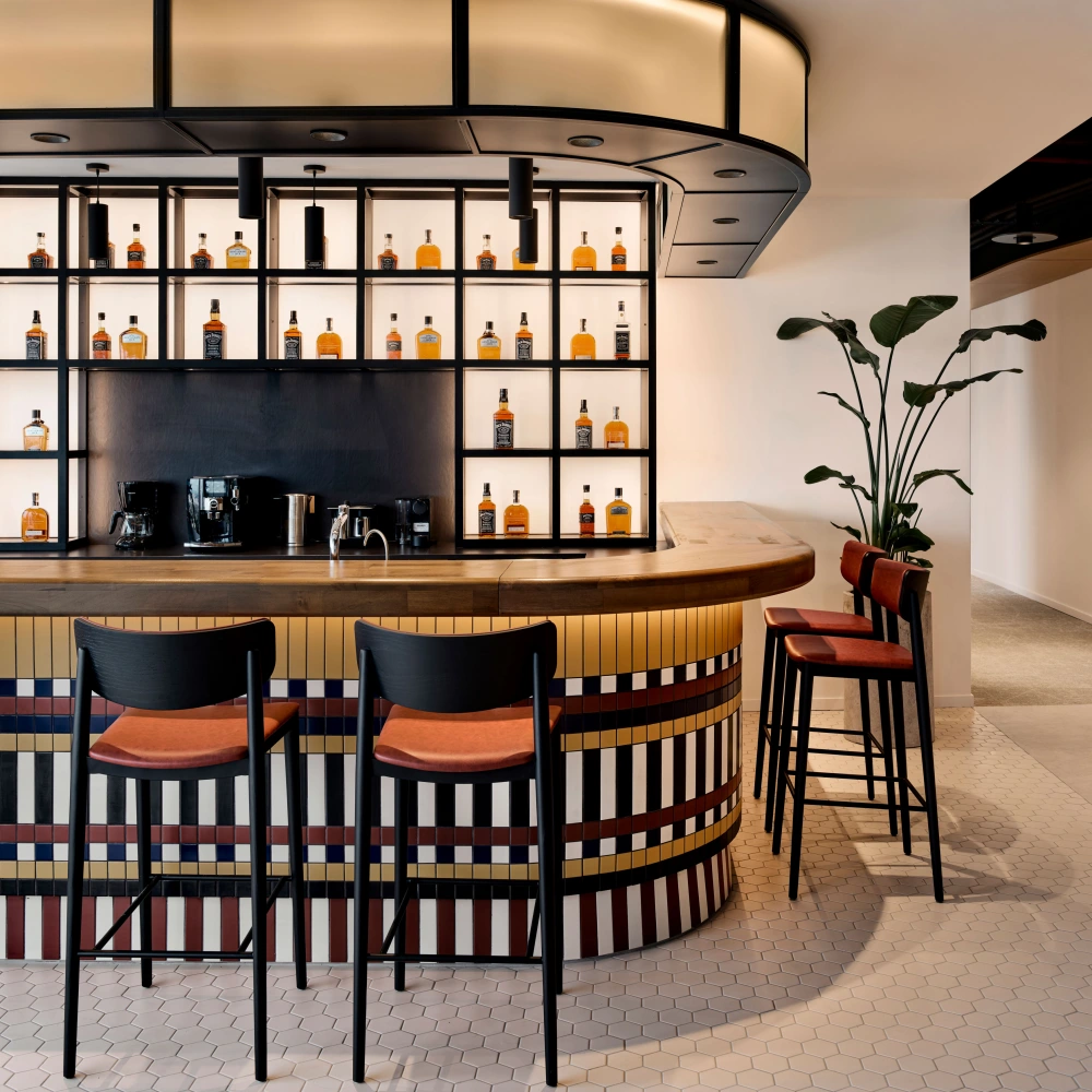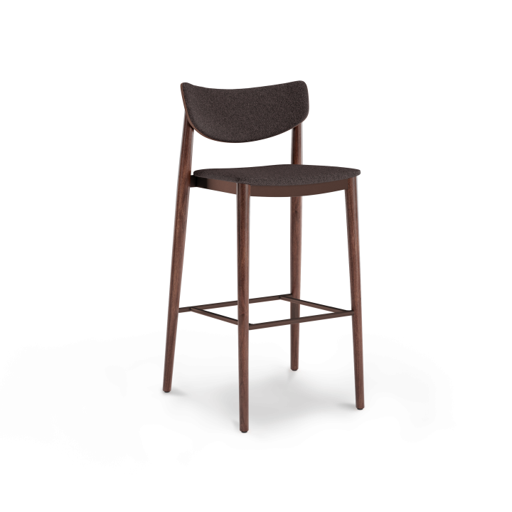 The Dante Barstool brings the collection’s signature wood frame and curved back to an elevated seat for bars, counters, and kitchen islands. Available in all-wood or upholstered versions, it combines warm craftsmanship with a slim, modern profile for hospitality and residential interiors.