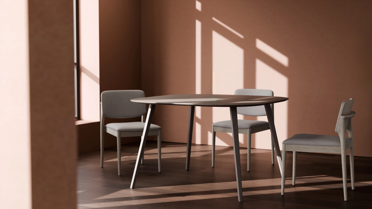 Defined by a continuous frame that flows into the armrests and shapes the backrest into a gentle curve, the Dion Chair is designed to enhance comfort while maintaining a clear architectural presence. The collection includes models with or without armrests, while the seat can be upholstered in fabric or leather and the backrest is available in exposed wood or fully upholstered finishes for a softer, more unified look.Â