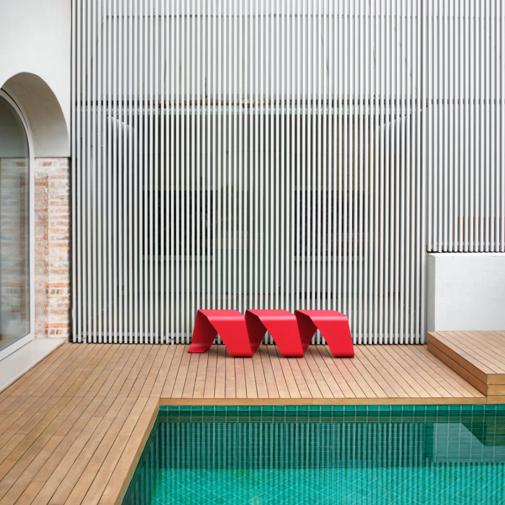 Much more than just a bench, DNA Out is a modular sculpture defined by its rhythmic, wave-like form, created through the repetition of a single continuous element. The result is a dynamic seating solution that enhances both open-air and indoor environments with architectural flair.