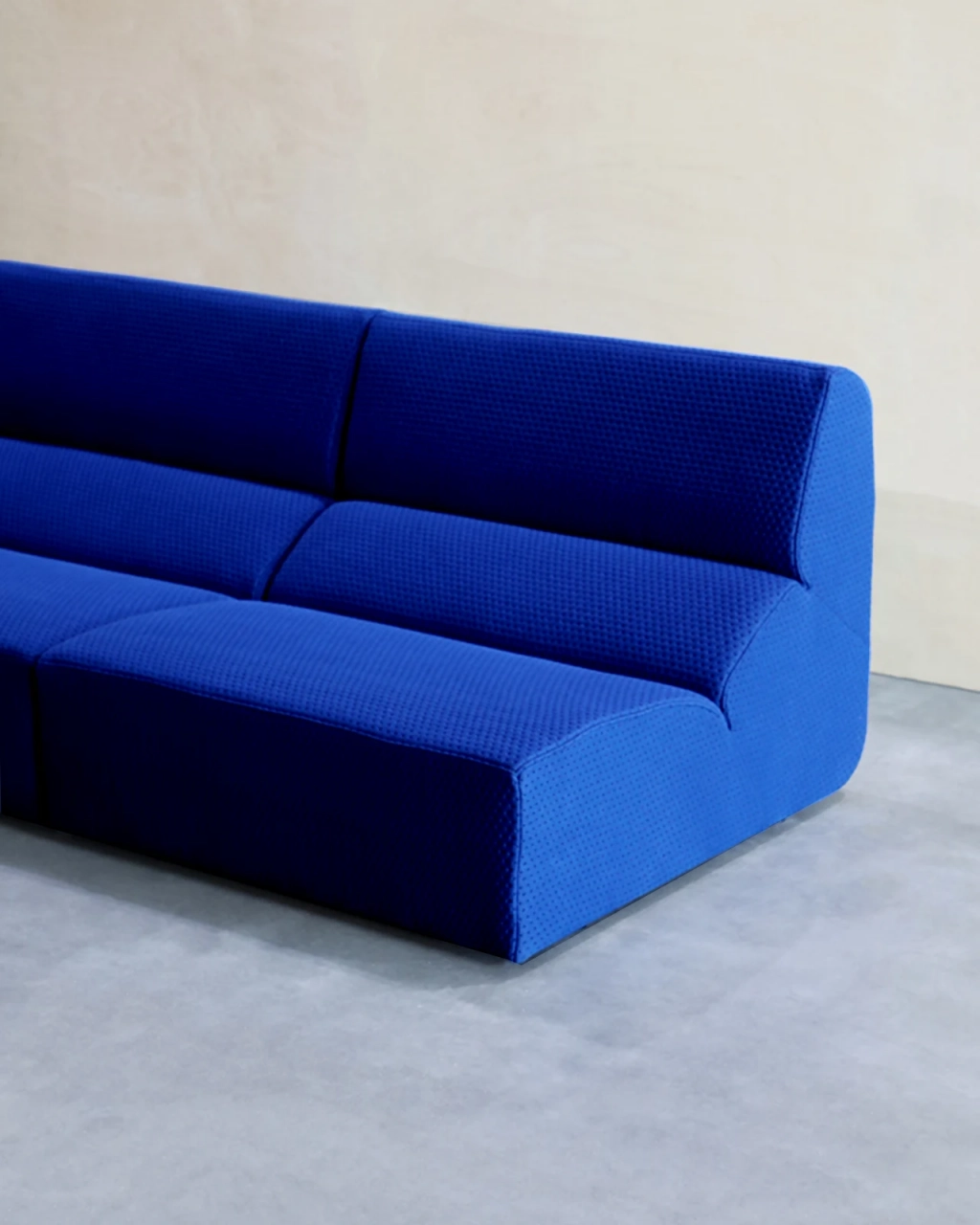 Radically simple and clean, the design is led by the idea of a three-dimensional spatial composition that contradicts the traditional definitions of an L-shaped sofa and interior. This concept provides a solution for your entire interior design project based solely on four basic elements – seater with backrest, two corners, and a pouf. The system allows for functionality by building endless interior configurations. Layout’s fundamentally neutral character can thus become dominant, depending on the person composing the space.
