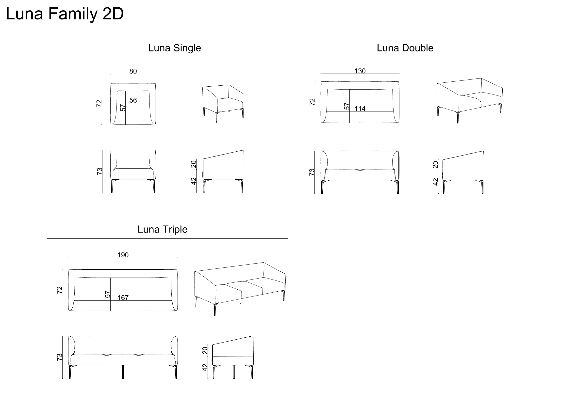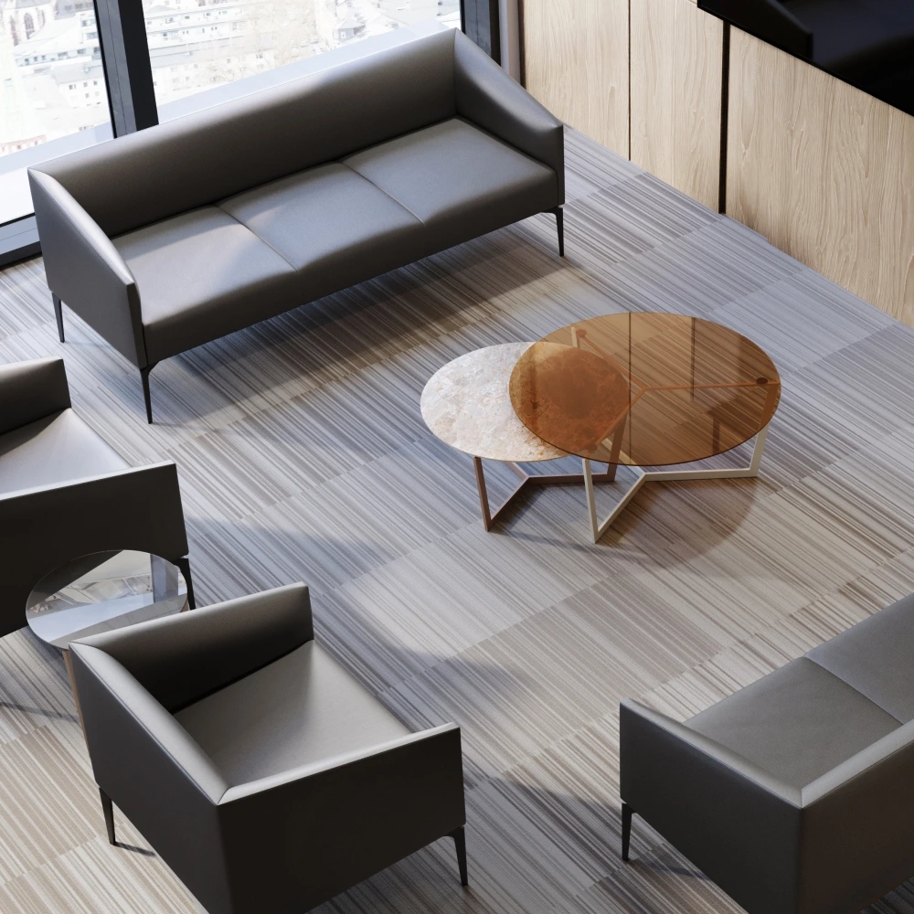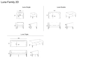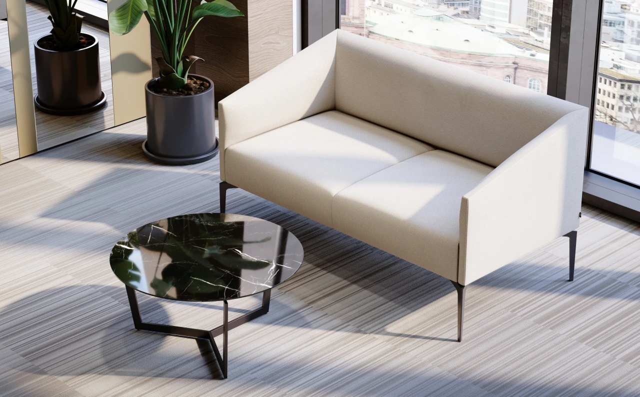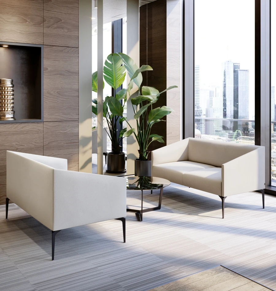 LUNA is a clean-lined sofa collection that balances soft comfort with a crisp, modern silhouette. Slim metal legs lift the form for a light, architectural look, making it a natural fit for living spaces, lobbies, and lounge areas.