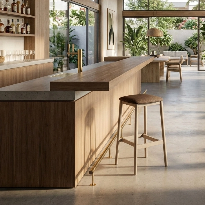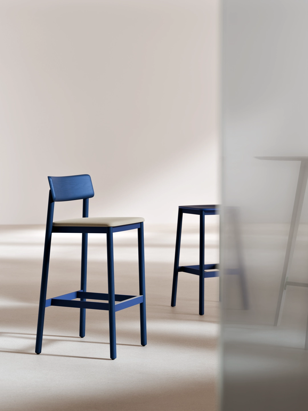 The Mika Bar Stools bring a refined and natural take on the classic stool form, combining solid wood craftsmanship with a clean, contemporary silhouette. Available with or without a backrest and in both kitchen and bar height, the collection offers a warm, versatile seating solution for dining, meeting, and shared interior spaces.