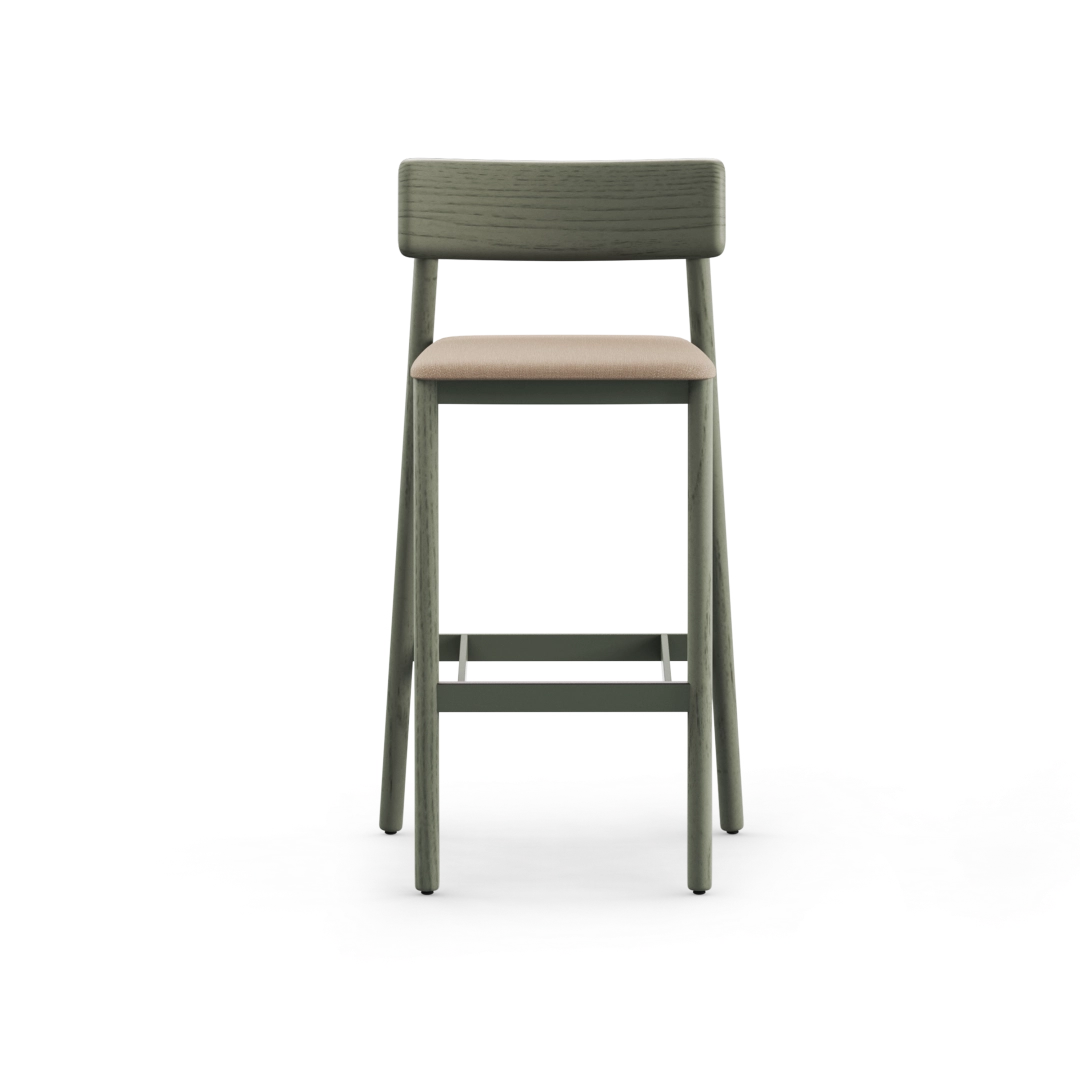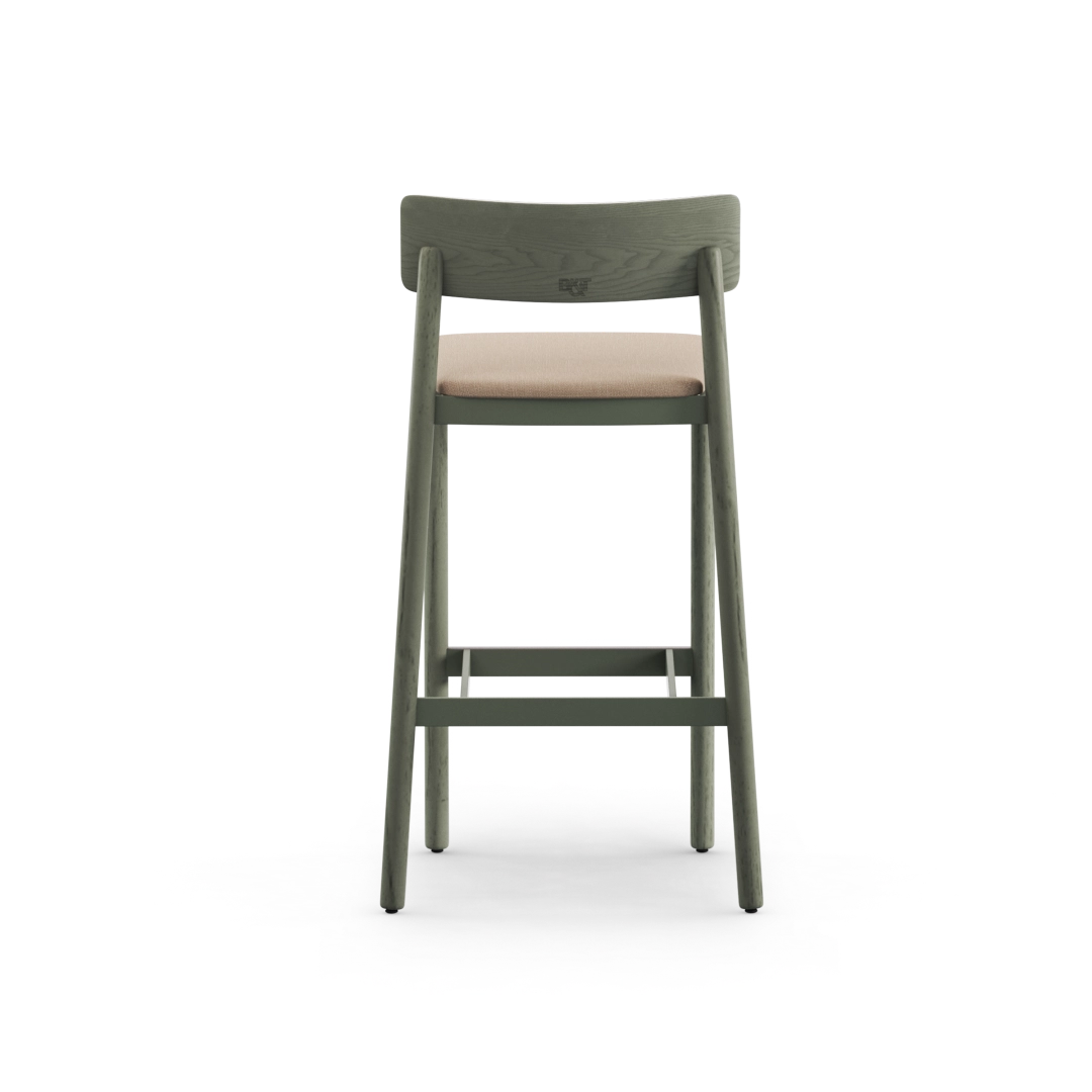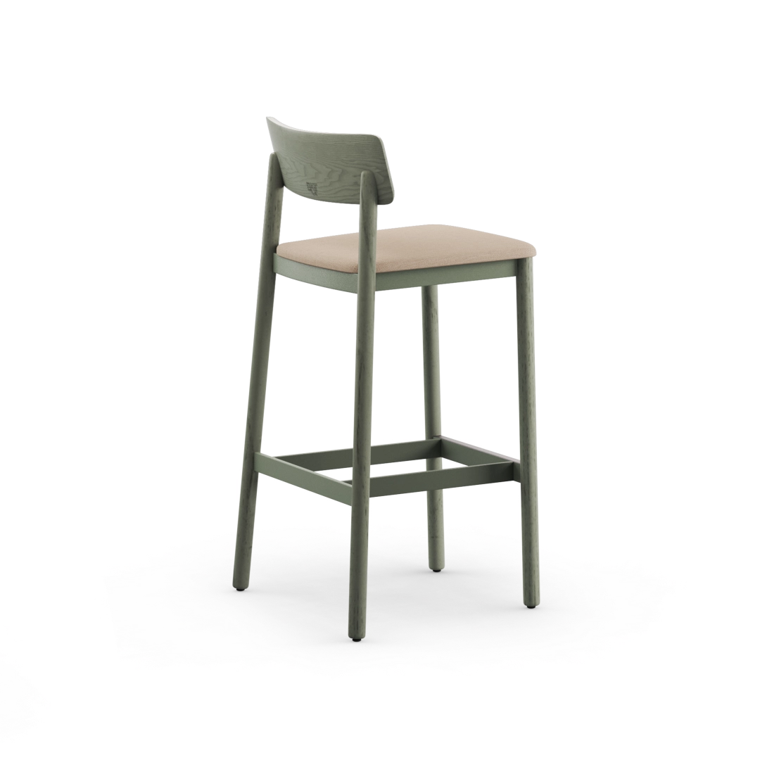 The Mika with Backrest Bar Stool offers a refined and natural interpretation of the classic wooden stool, blending solid wood craftsmanship with a clean, contemporary silhouette. Its solid wood legs and backrest, plywood seat, and optional cushioned version create a warm, versatile seating solution for dining areas, meeting spaces, and shared interiors.
