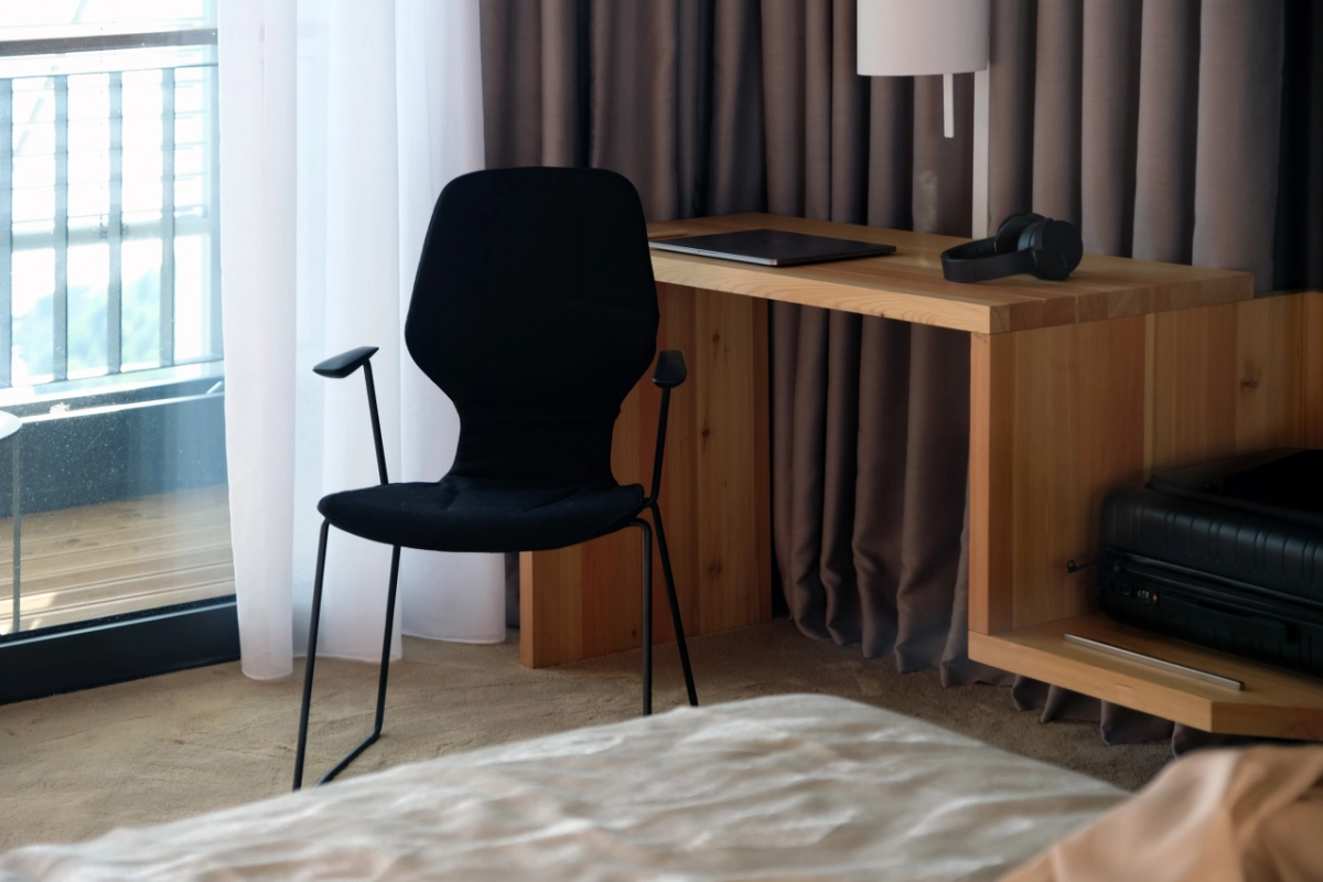 Oblikant is designed as a family of variations, offering multiple base options—from stackable steel frames for efficient contract use to a more sculptural solid wood version for warmer residential or boutique environments. The line has also expanded to include upholstered versions in premium fabric/leather, adding softness and tactility while preserving the chair’s essential silhouette and adaptability for conference rooms, dining areas, and collaborative spaces.