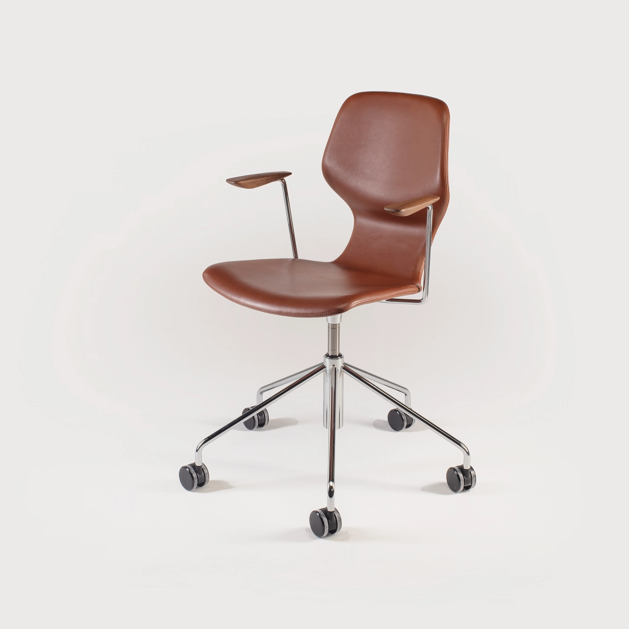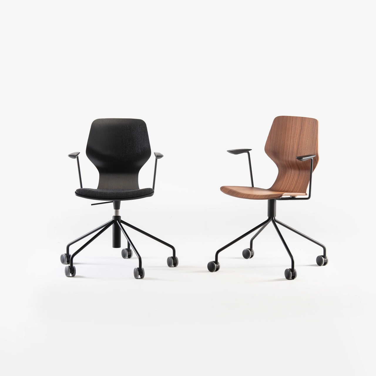 A statement office chair that stays versatile—distinct in profile, easy in any interior.